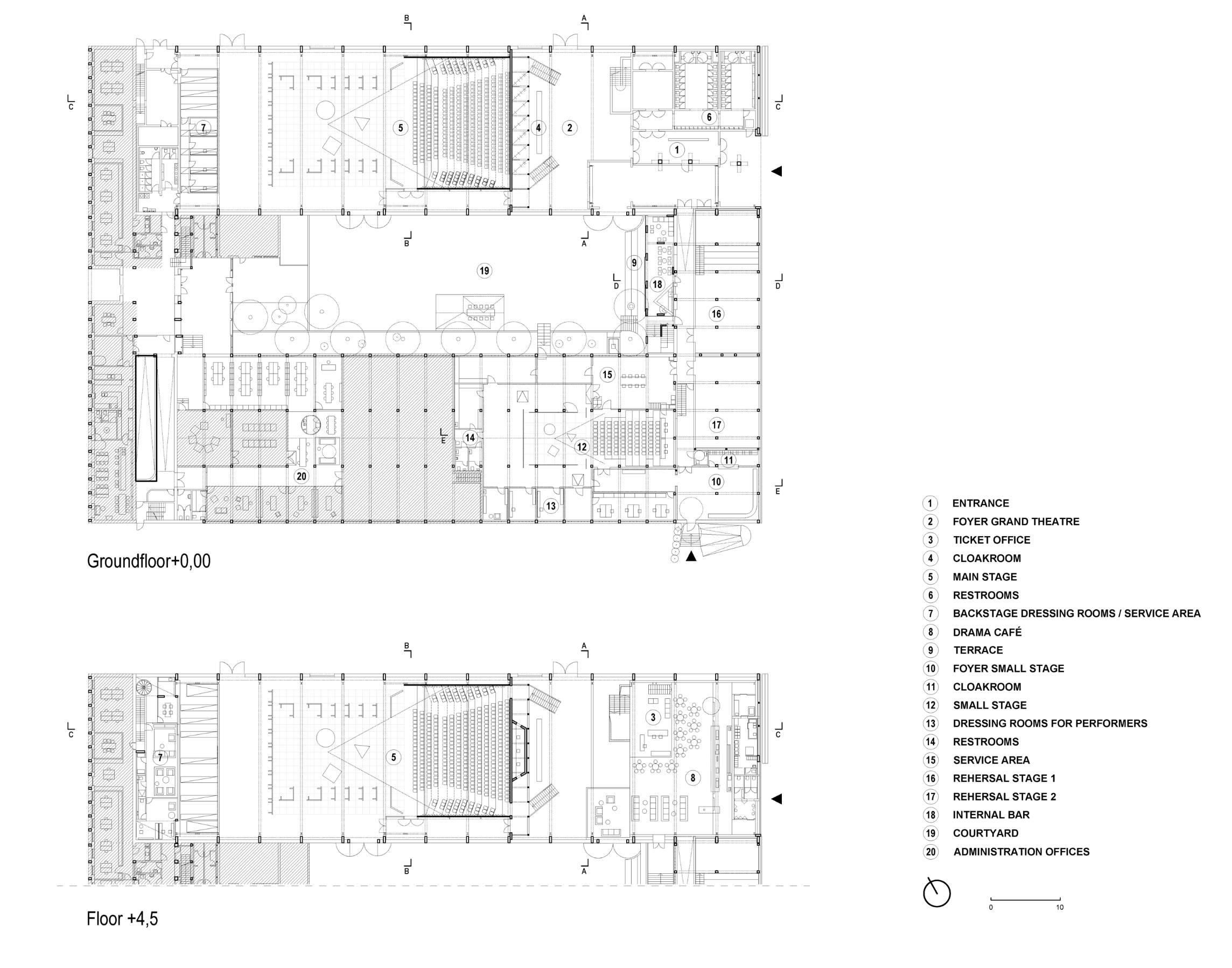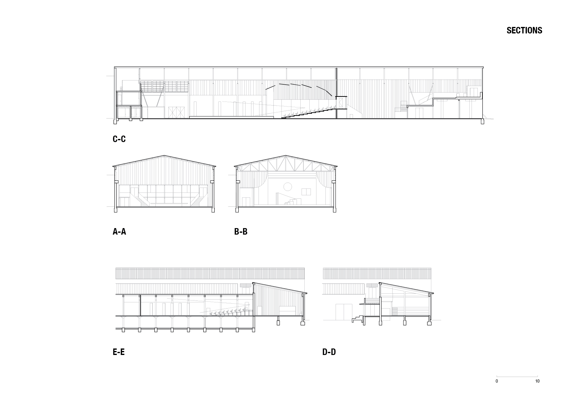 The goal of the project was to establish and organise temporary spaces for the entire program of the main Slovenian theatre in historical industrial buildings, within a limited budget, within 10 months, with a sustainable spatial and material definition. The new architecture creates a specific character within the generic context of the business-industrial zone. The first trigger for programmatic and ambiental changes at the location was a small bar (2017), which was joined by a sports program (2018), a contemporary business program (2020), and a fair and entertainment program (2022), which developed the location to the point that it became potentially interesting for hosting a large cultural institution. The Temporary SNT Drama includes the central hall of the Big Stage (361 seats), adjacent lobby, a public bar with a ticket office and an open terrace in the inner courtyard, the Small Drama hall (100 seats) with a lobby, belonging service and technical rooms, two rehearsal halls, a “pavilion” with an bar for employees that opens onto the inner courtyard.